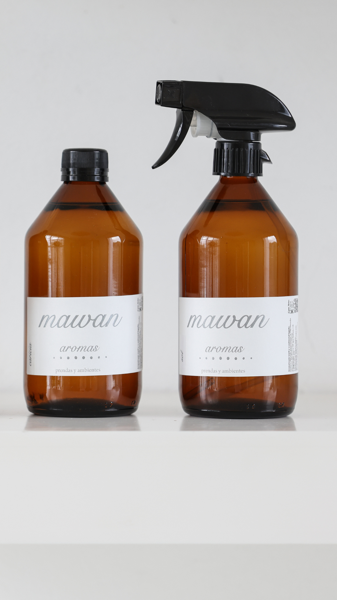 Fragancia en envase de vidrio color ámbar. Para pulverizar sobre